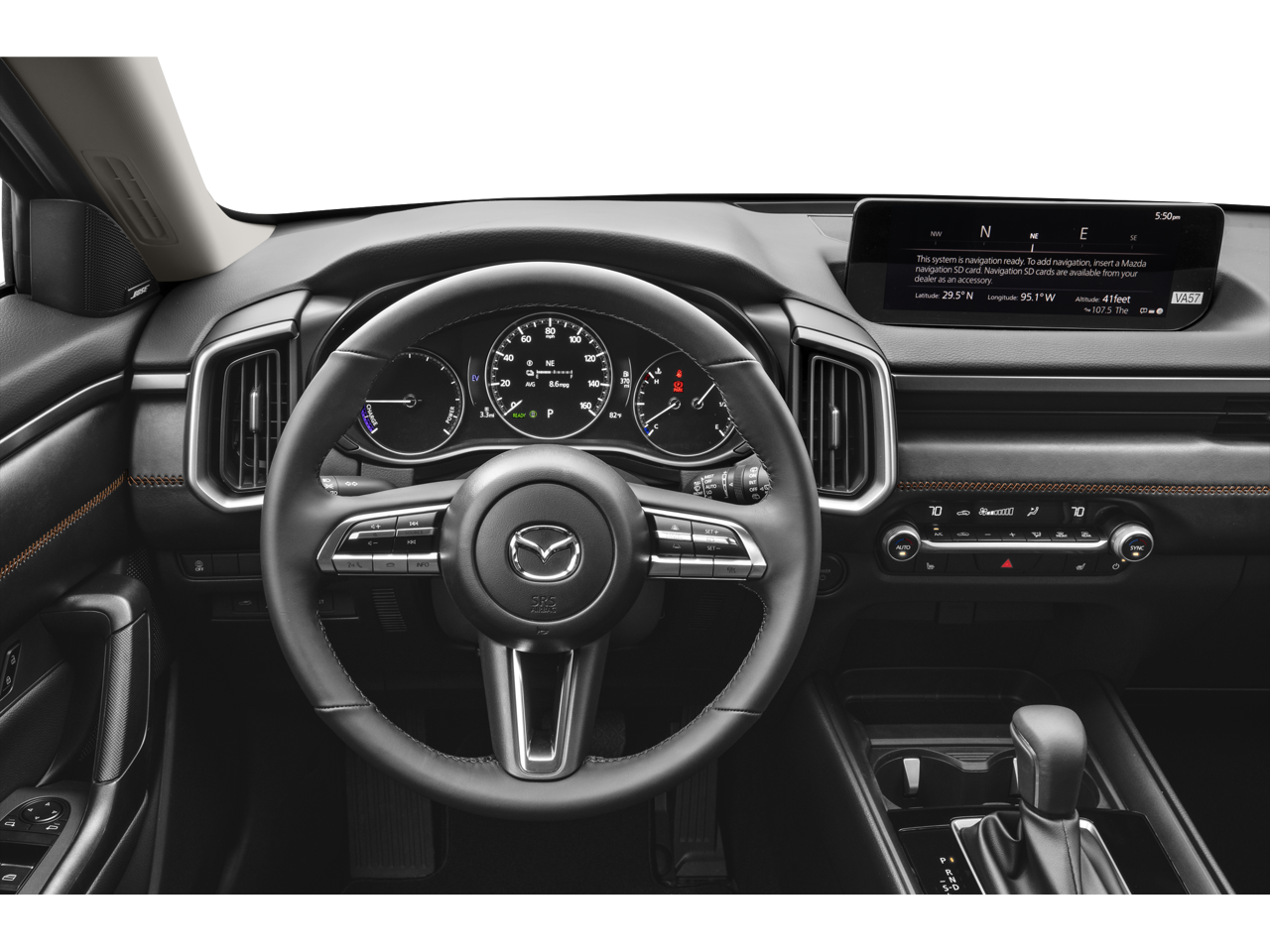 • AM/FM/HD Radio Bose 12-Speaker Audio Sound System -inc: 10.25" full-color center display w/touch screen for Apple CarPlay and Android Auto, Alexa built-in, audio menu voice-command, Bluetooth® hands-free phone and audio capability, MAZDA CONNECT™ infotainment system w/in-vehicle Wi-Fi, navigation services including vehicle finder/send to car/map online update from PC, infotainment system voice command, multi-function commander control, radio broadcast data system program information, SiriusXM satellite radio w/3-month trial subscription (not available in AK and HI), 4 USB audio inputs and wireless Apple CarPlay and Android Auto integration